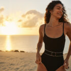 El cinturón es extraíble, lo que permite convertirlo en un bañador negro básico y elegante.