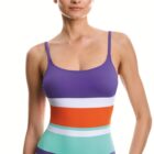 Bañador con copa interior. El escote es redondo tipo camiseta para realzar el busto.