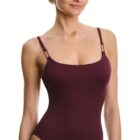 Bañador con copa interior. El escote es redondo tipo camiseta para realzar el busto.