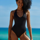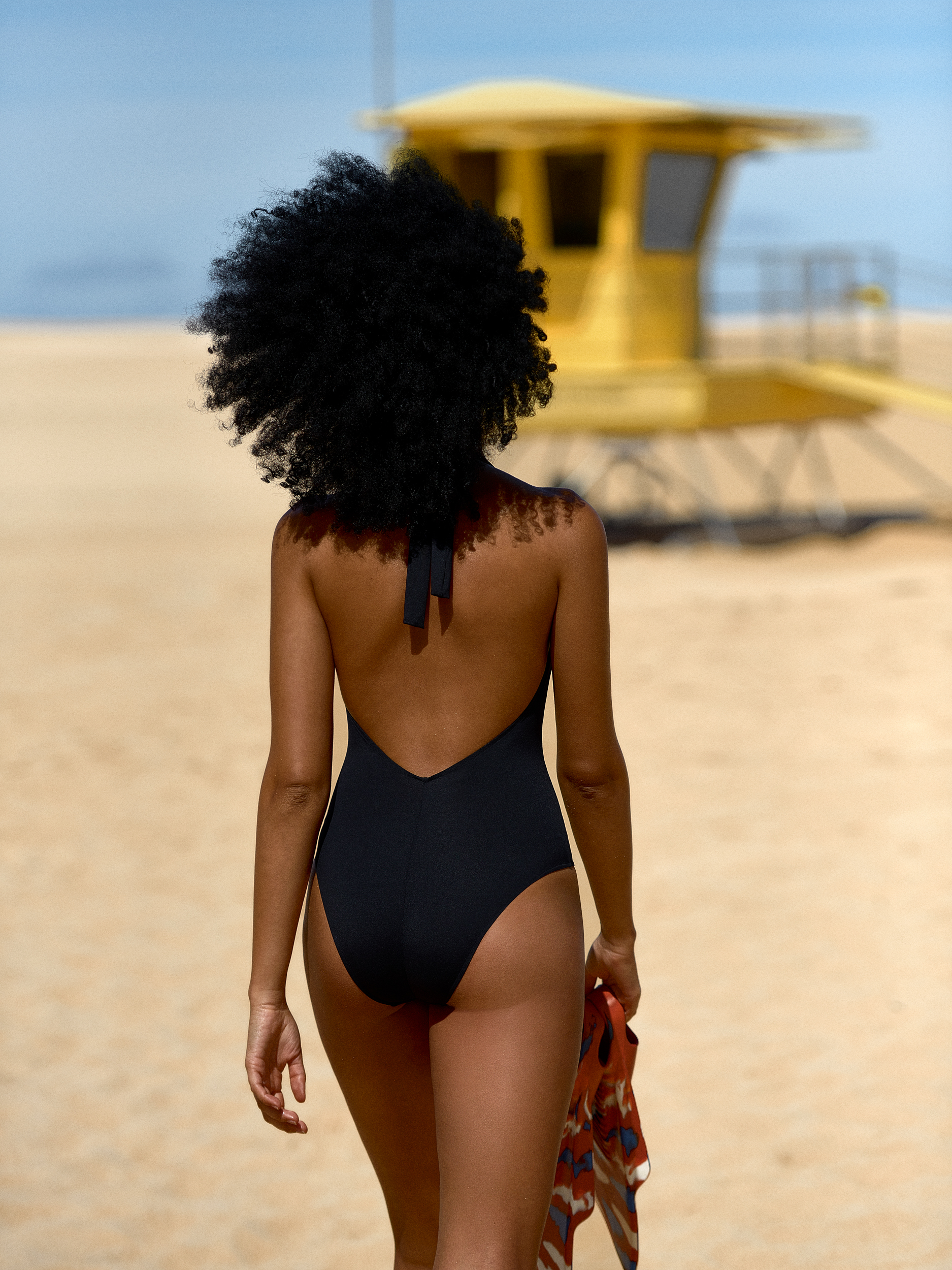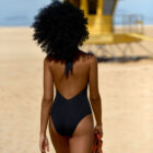 Bañador halter sin relleno y sin aro, atado al cuello.
