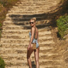 La modelo mide 1’80 cm y lleva una talla 42/90.