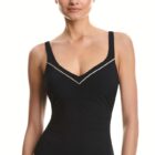 la parte delantera del bañador permite adaptar la prenda al torso femenino. La