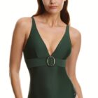 Colección de bikinis y bañadores lisos en tejido piqué, con una espectacular aplicación símil carei a tono con