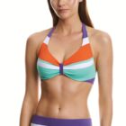 Bikini halter con aros interiores, de capacidad C. El tirante se puede colocar en