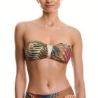 Bikini bandeau con aros interiores reforzados. en talla D. Los tirantes son opcionales. Esta prenda cuenta