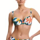 «Bikini con copas y aros cubrientes, de capacidad C. El escote es de estilo «»bustier»».