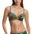 «Bikini con copas y aros, de capacidad C. El escote es de estilo «»bustier»». El