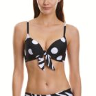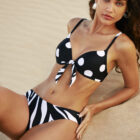 Bikini con copas y aros interiores. de capacidad C. El tirante es multiposición. atado al cuello o a