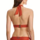 Bikini triangular con copa y aros interiores. La braga es baja y los lazos son removibles.