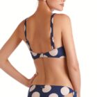 Estampado de maxi topos en tonos nude y brown sobre fondo marino o con detalles fruncidos.