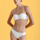 Braga de bikini básica pequeña. Liso en blanco o negro con logo en colores pride.