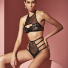 Sujetador fabricado con encaje de Leavers, tul y apliques en dorado. Diseño cómodo pero seductor. Ideal para complementar cualquiera de los tanga de la London Collection.