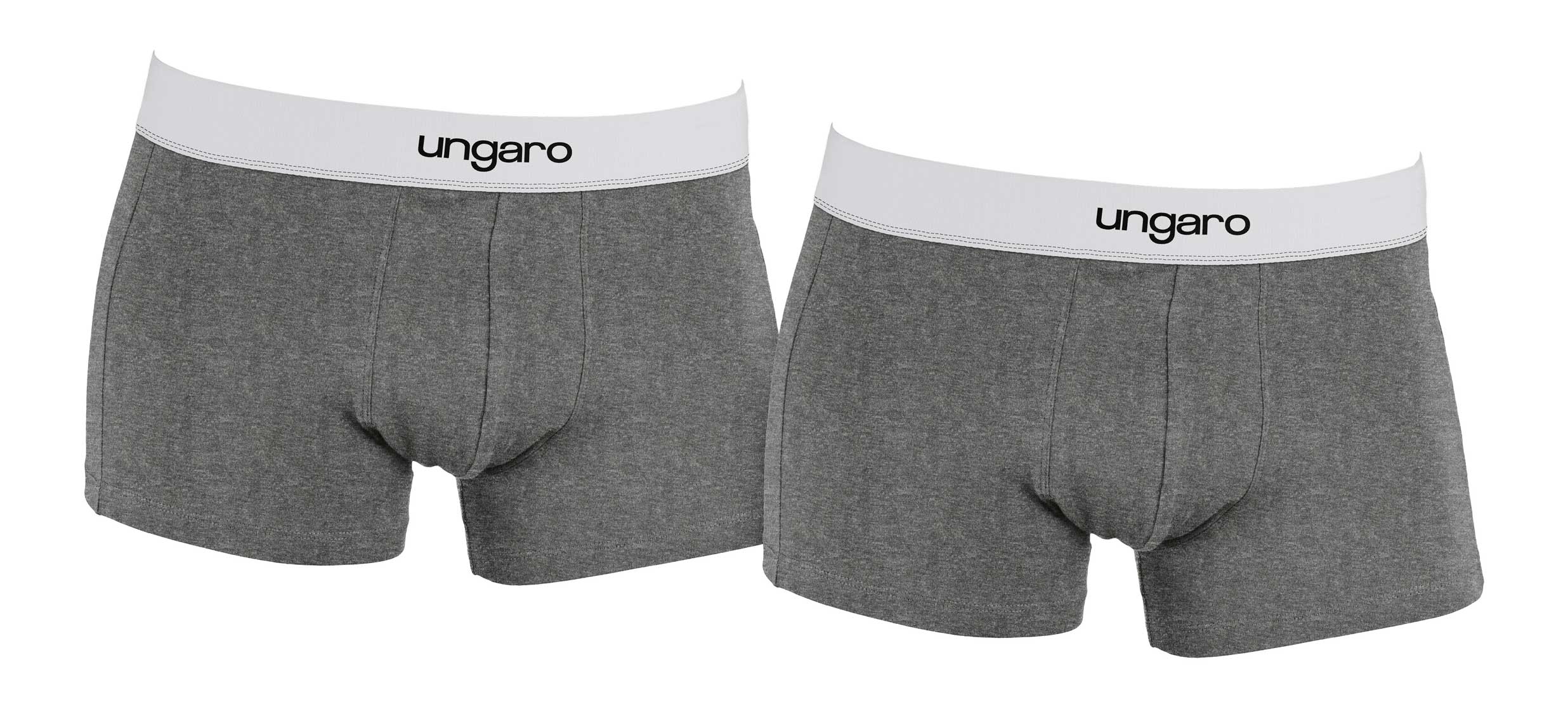 Pack de dos boxers color gris claro con cintura elástica blanca a contraste con logo de Ungaro. Fabricado en algodón y elastano para garantizar una máxima comidad y ajuste. Por razones de higiene no se admite cambio ni devolución de este artículo.