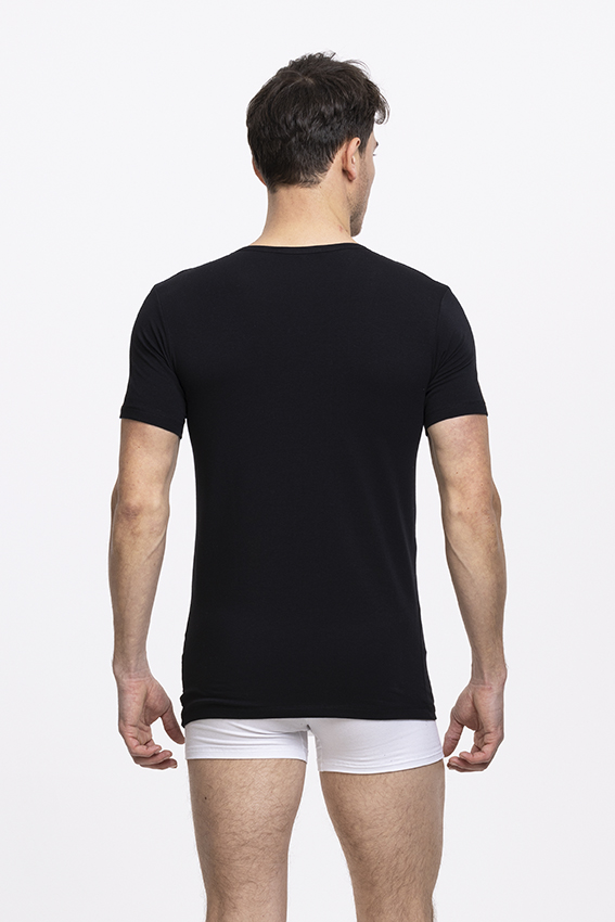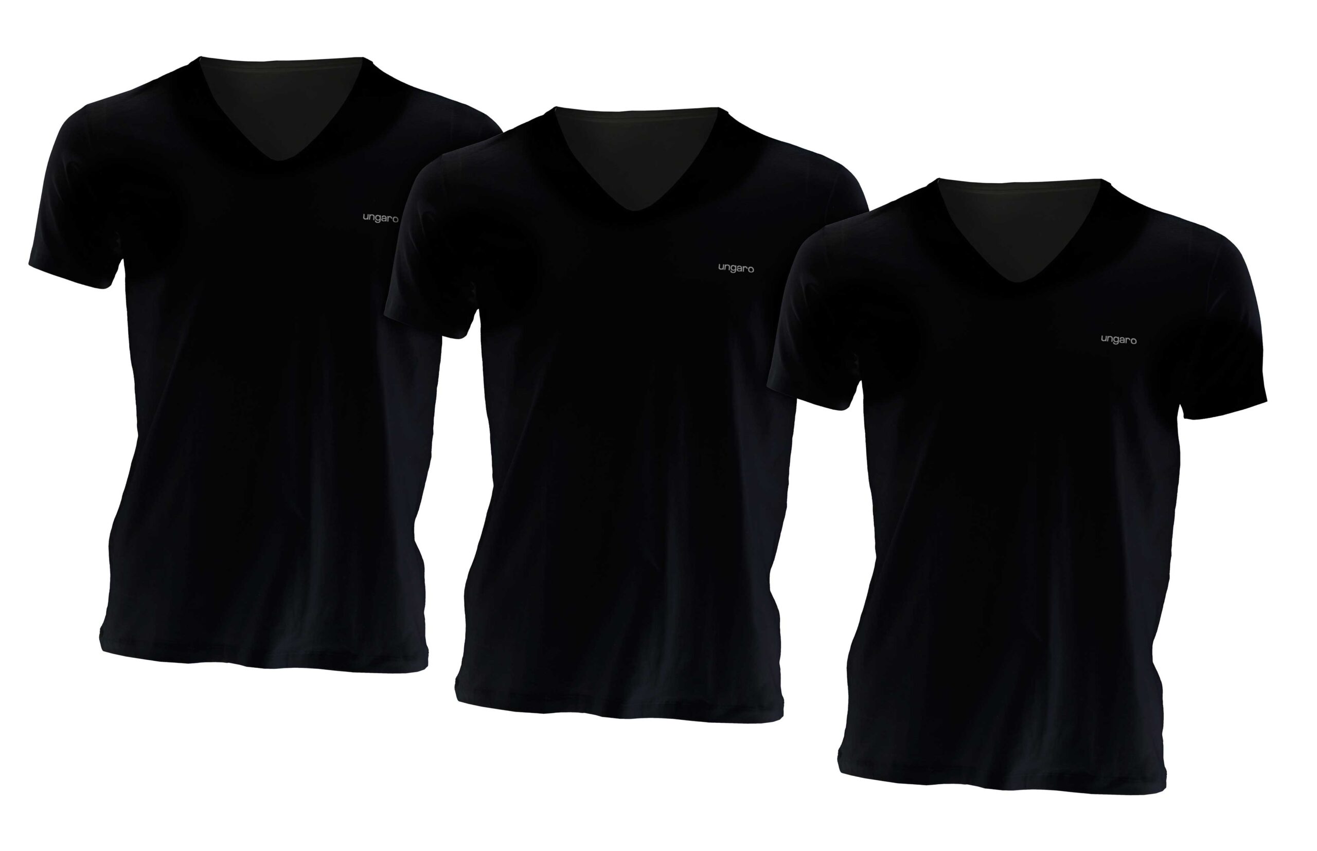 Camiseta básica de manga corta con logo Ungaro en la parte superior izquierda y cuello «V» en color negro. Fabricado en algodón y elastano que garantiza que sea ligero y transpirable.