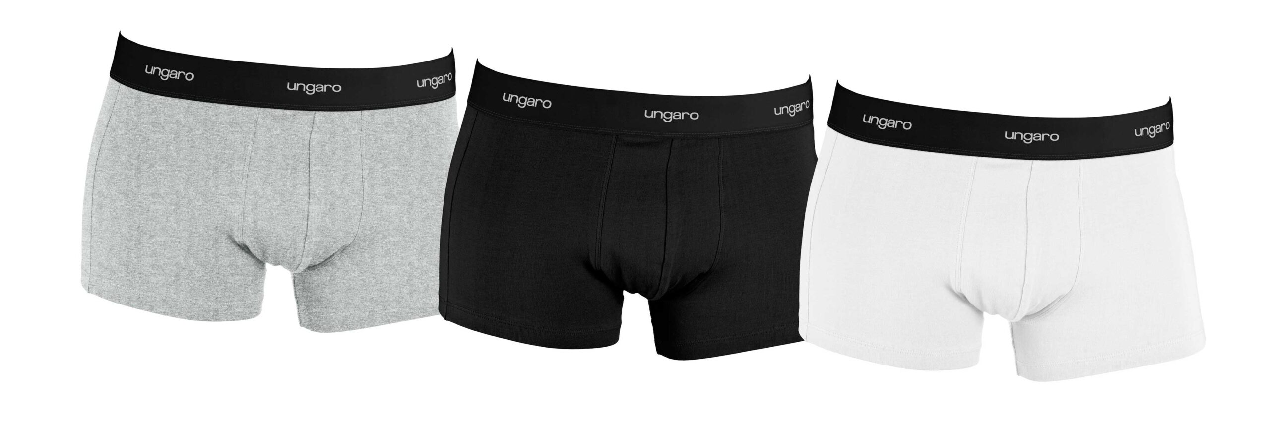 Pack de tres boxers en color blanco, negro y gris con cinturilla elástica negra con logo de la marca Ungaro. Fabricado con algodón y elastano para garantizar un mejor ajuste y comodidad. Por razones de higiene no se admite cambio ni devolución de este artículo.