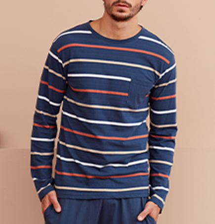 Pijama de manga larga. Este pijama de la línea FORET muestra la calidad y comodidad habituales de la marca.
