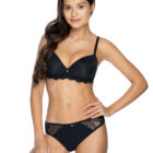 Línea joven, moderna y de primera línea que acentúa las curvas de manera óptima y sexy. El encaje lujosamente usado con secciones transparentes deja que la piel brille. Decorado con detalles de joyería.