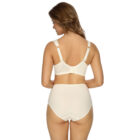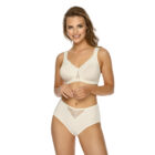 Sujetador con copas dobles moldeadas y con encaje en la parte superior. Los tirantes son cómodos, anchos, acolchados y el cierre también es ancho para una buena distribución y alivio de la presión. El forro de la copa es con alto contenido de algodón aportando suavidad con el contacto en la piel. La sutil microfibra brillante combina con el encaje floral.