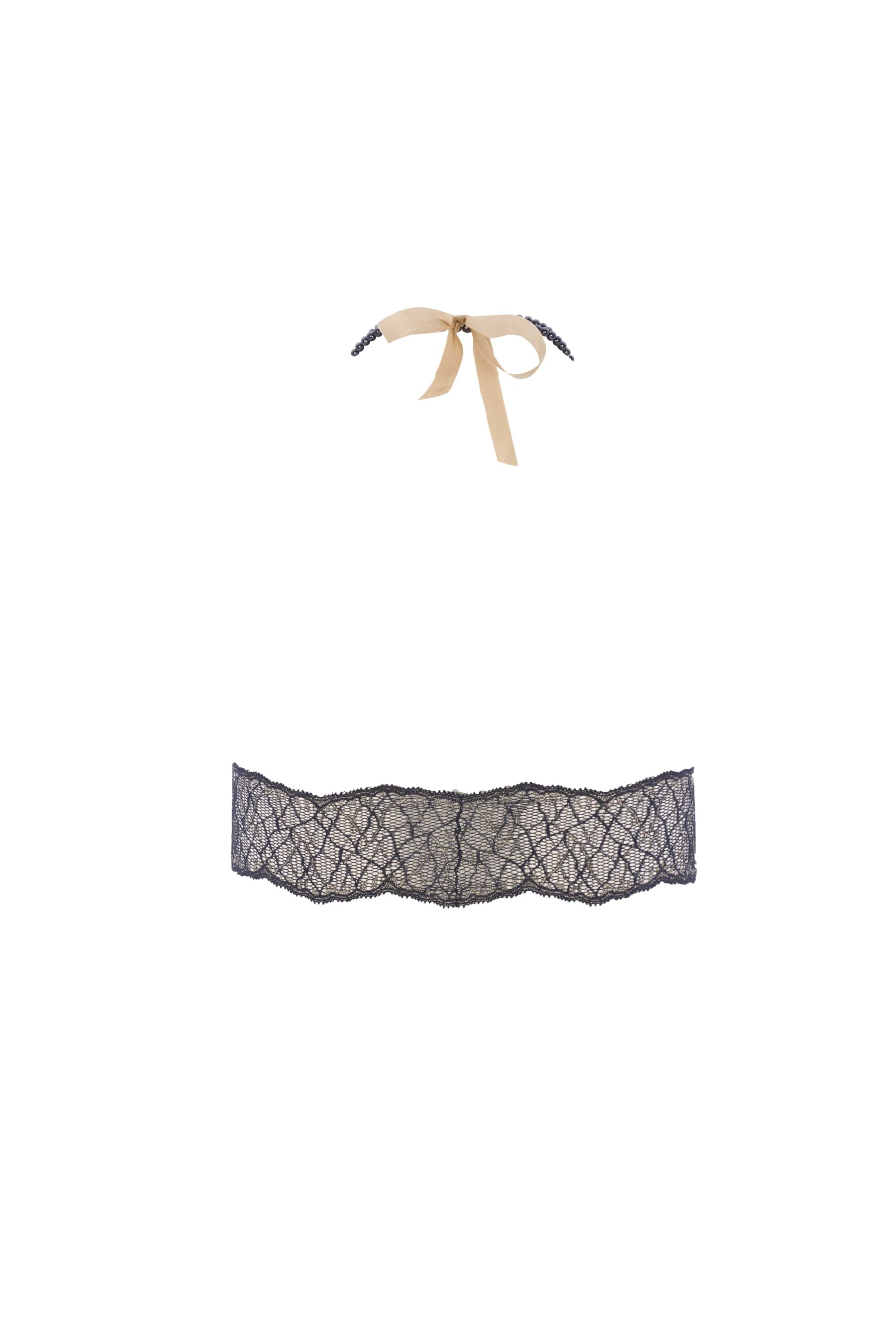El complemento perfecto para nuestros tangas Sydney Dark. Mismo diseño que el modelo Sydney Bra pero con perlas negras. La propuesta BRACLI para el pecho femenino más exuberante. Doble collar de perlas, doble sujeción ¡Pura elegancia! Sydney Dark Bra está fabricado con delicado encaje italiano con un toque de lurex dorado.