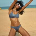 Bikini en color antracita con tejido satinado.