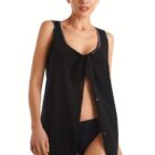 Vestido sin mangas, abierto, anudado en el escote y con vivo efecto lúrex.