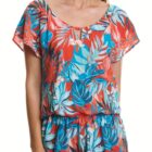 coral y turquesa en todas sus tonalidades. La modelo mide 177 cm y lleva una talla