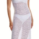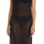 Vestido de canalé semitransparente, largo hasta los tobillos con cuello redondo,